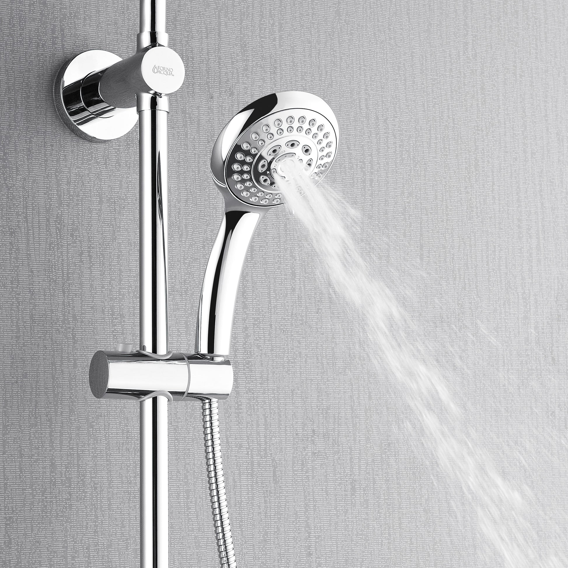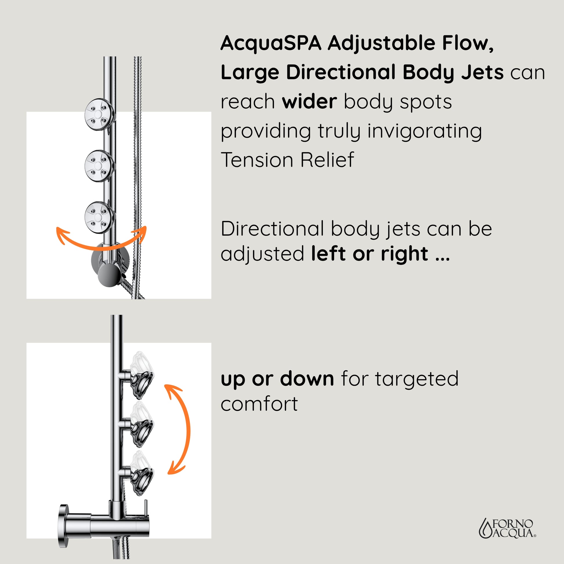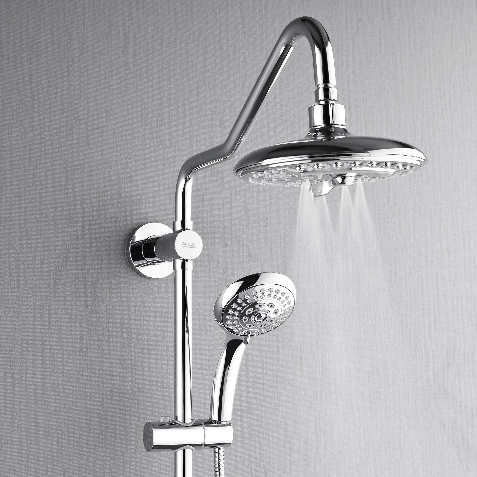 Forno Acqua AcquaSPA Retrofit Shower, Overhead Rainfall, 8 Inch Shower Head, Handheld Shower Head, Body Jets, 6 Way Diverter, Polished Stainless Steel Finish, 2.5 GPM Flow Rate