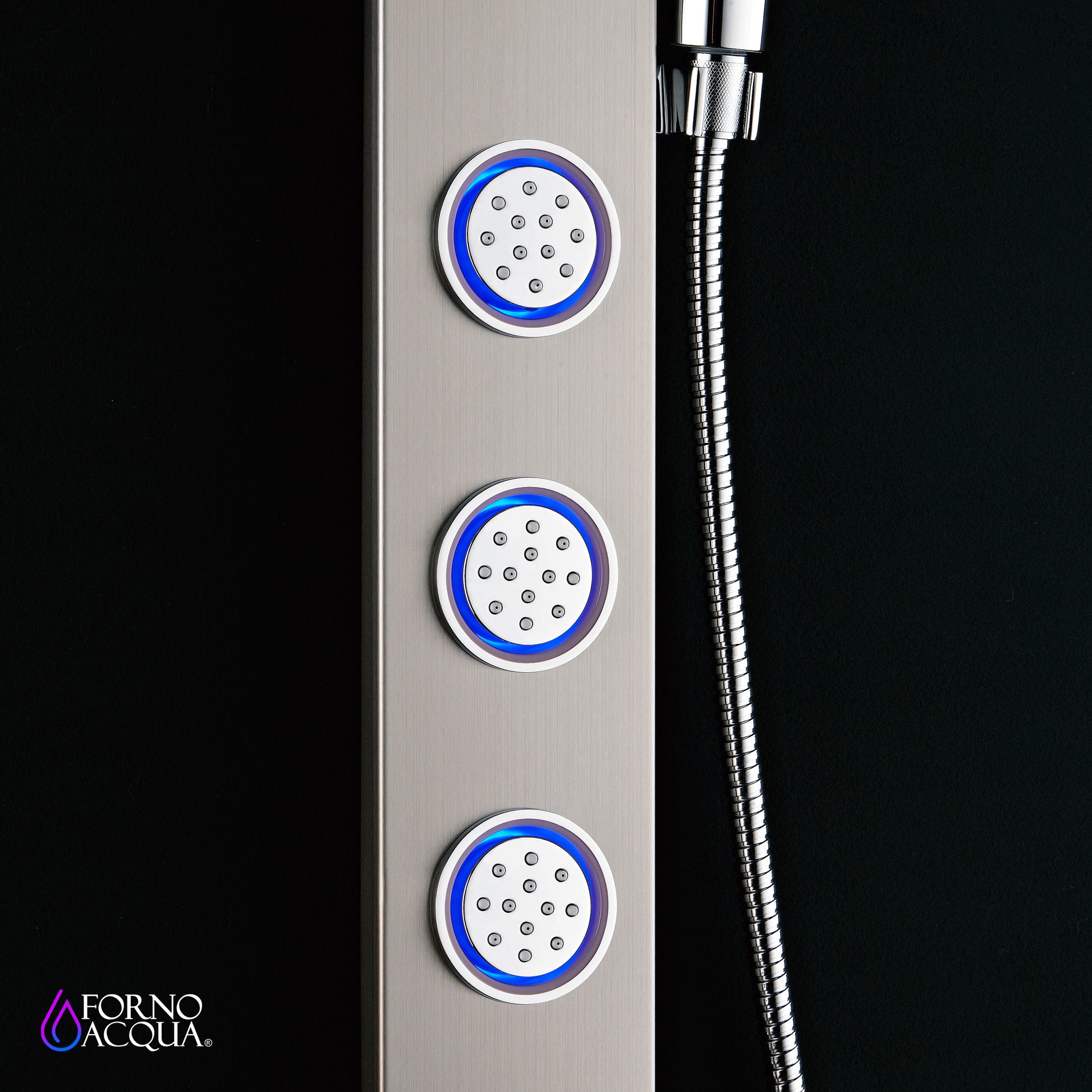 Forno Acqua AcquaSPA Shower Panel with SensoTemp, Stainless Steel, Overhead Rainfall Shower, Handheld Shower Head, Body Jets, 1.8 GPM Flow Rate