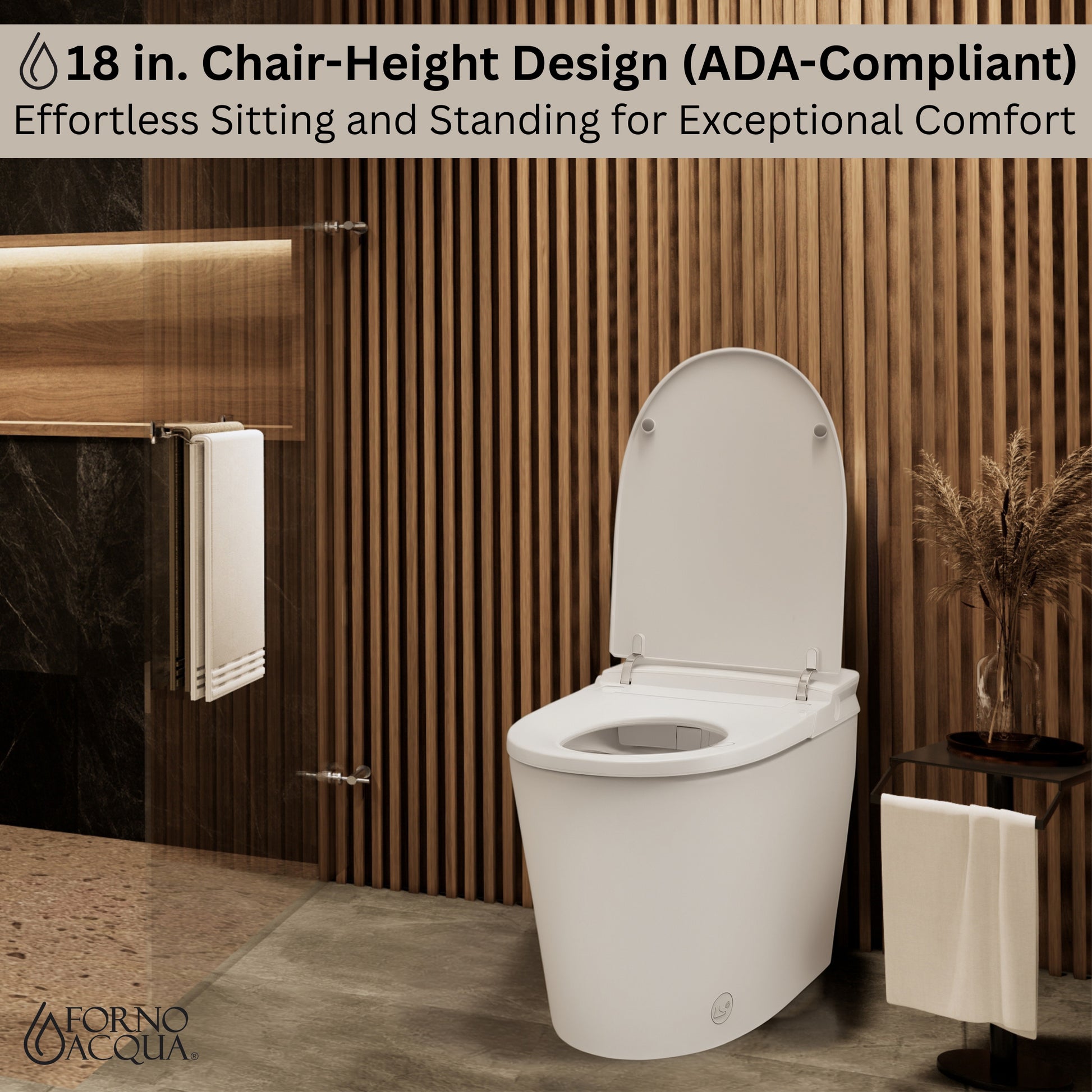 FORNO ACQUA Luxurious Smart Toilet. Includes Heated Seat, Auto Flush, Auto Lid, Powerful Flush, Ideal for Powder Rooms.