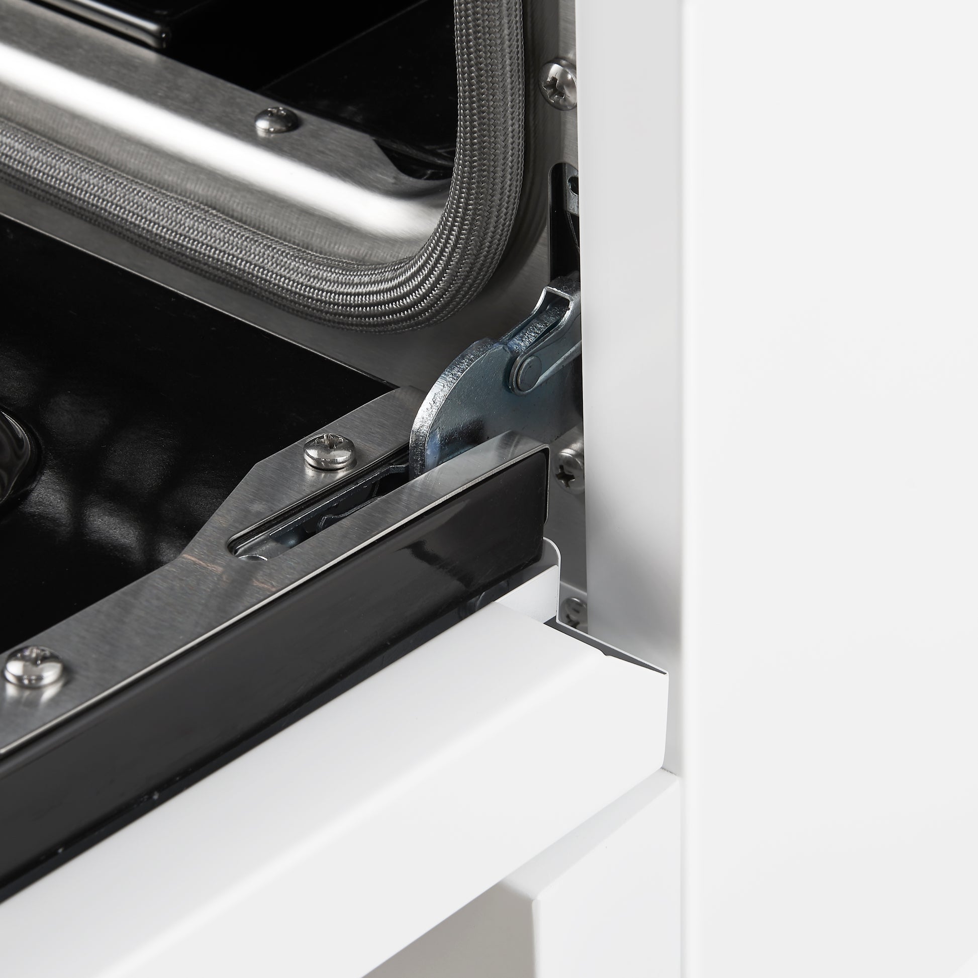 * Deep recessed white enamel cooktop contains spills, making cleanup quick and effortless.