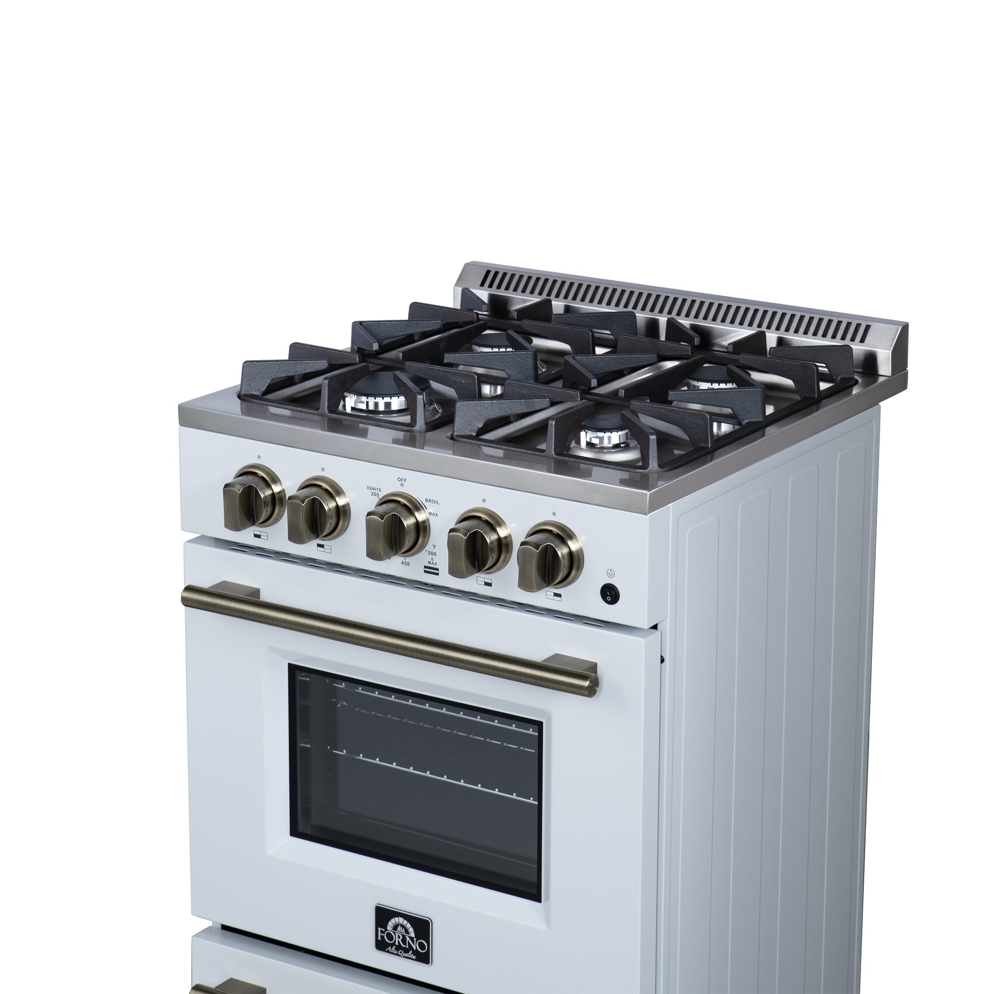 Forno Breno 24 Inch Freestanding Gas Range in White with Antique Brass, Plug Included, Energy EfficientFFSGS6290-24WHT