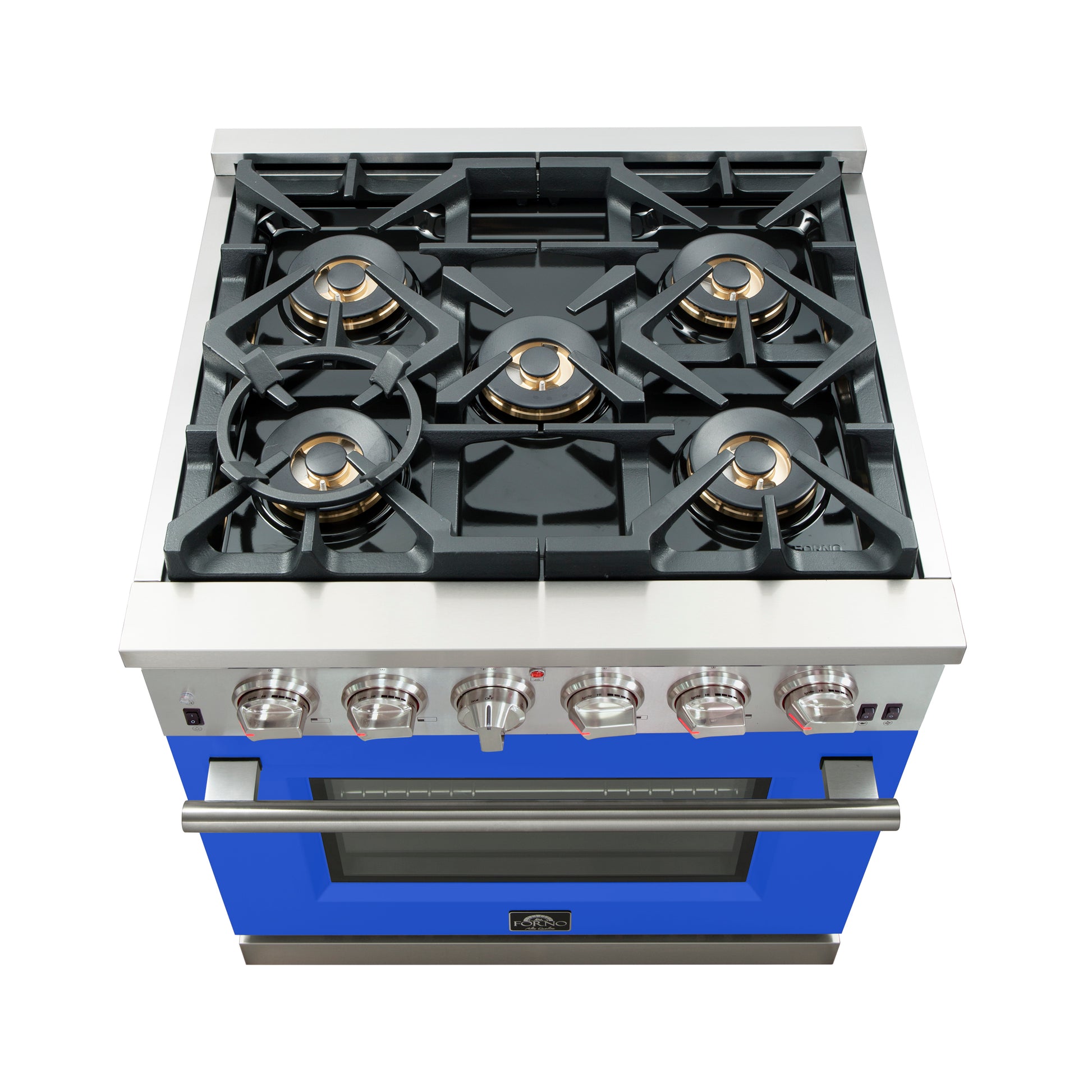 Forno Capriasca 30-Inch Freestanding Gas Range, 4 Burners, True Convection Oven, Blue Door