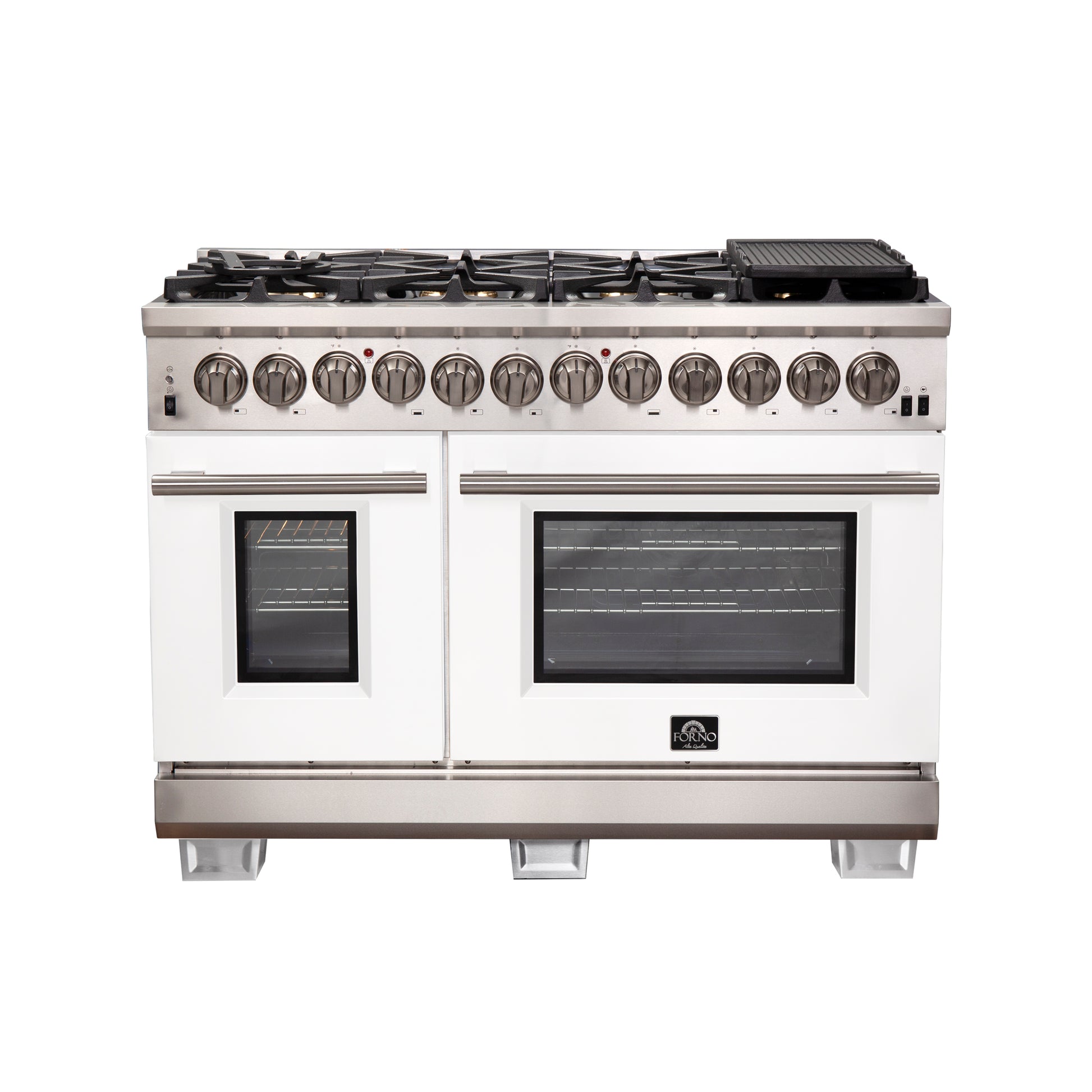 Forno Capriasca 48-Inch Freestanding Dual Fuel Range, 8 Burners, True Convection Oven, White Doors