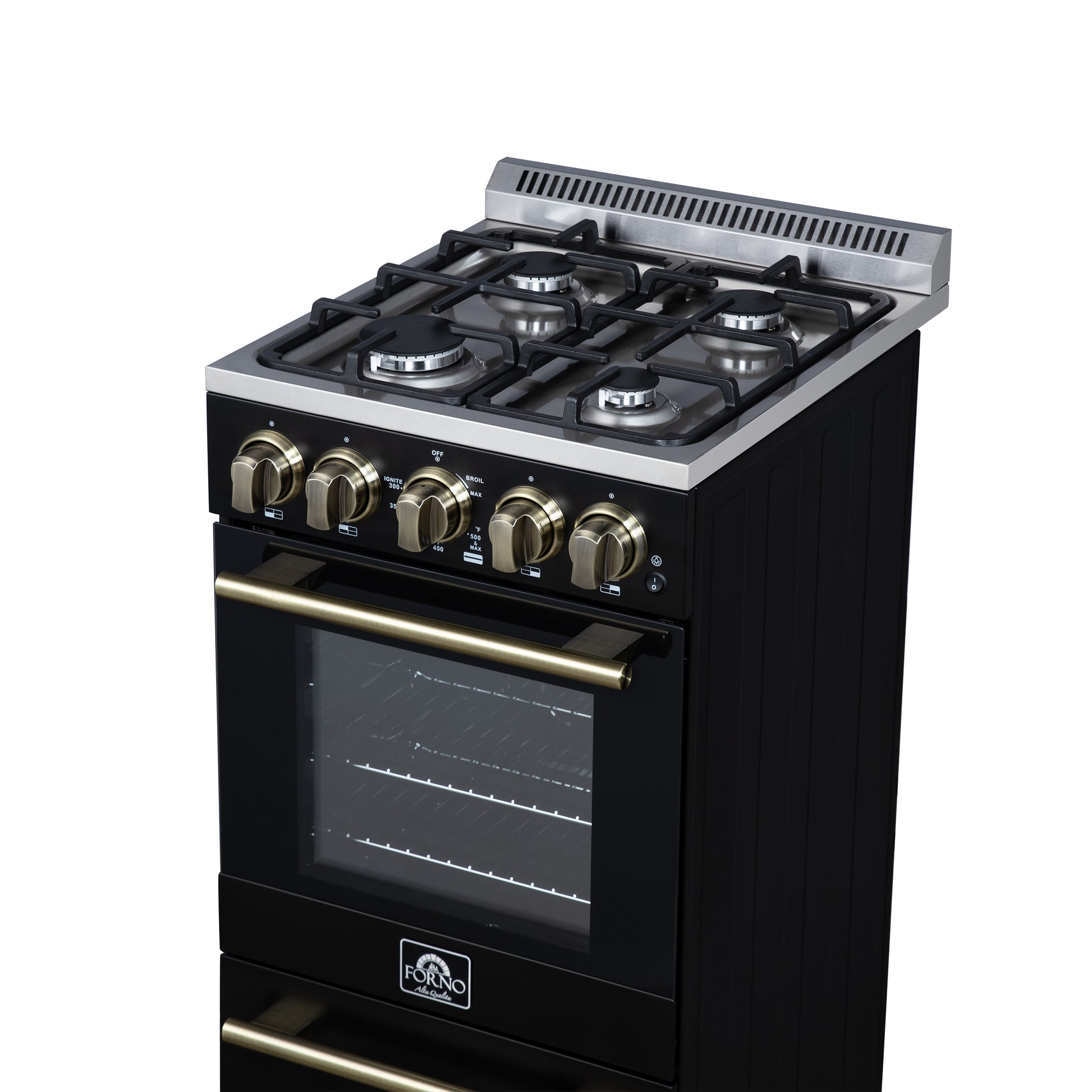 Forno Lamazze 20 Inch Freestanding Gas Range in Black, Compact Design