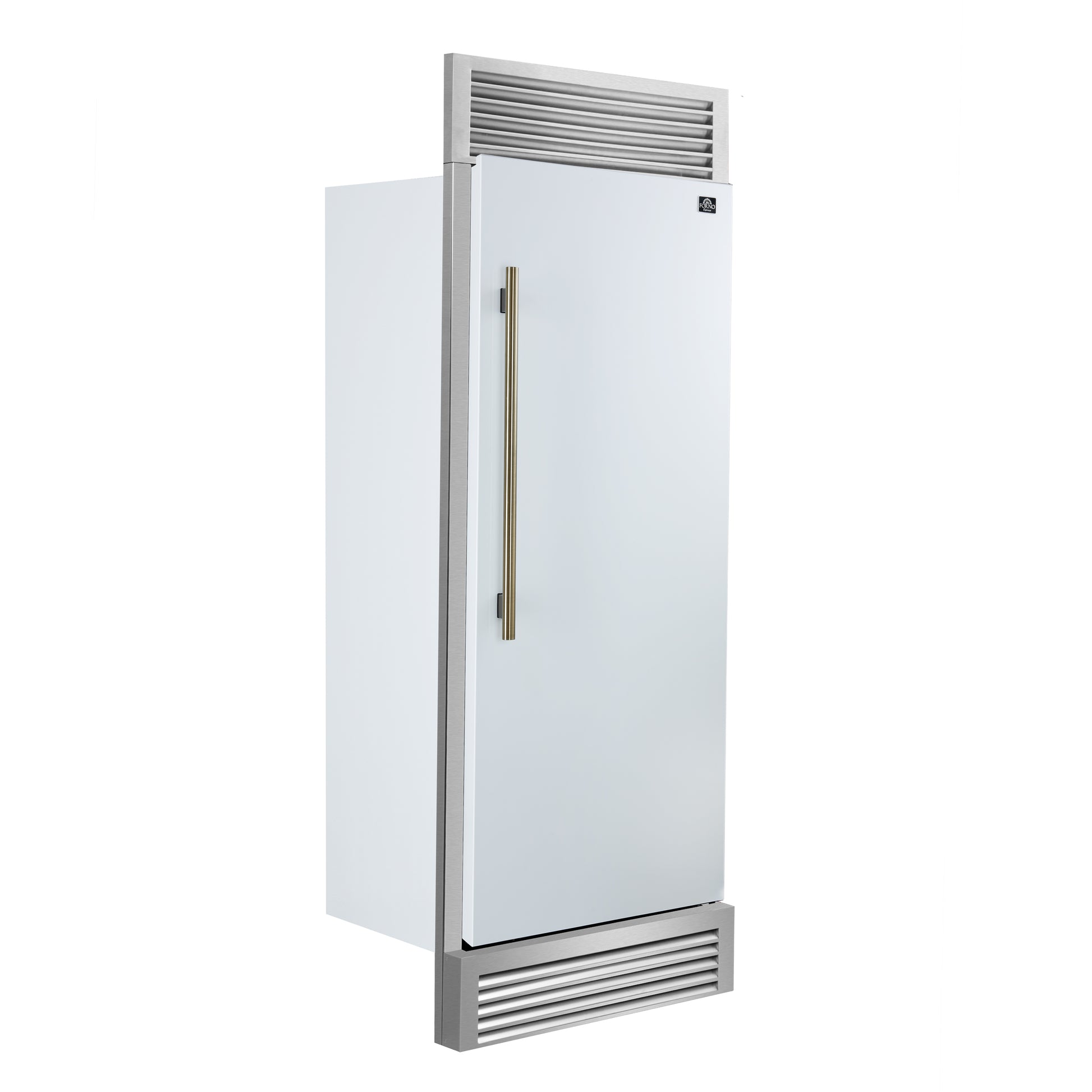Forno Maderno 28-Inch Built-In Convertible Refrigerator in White with Antique Brass Handle, 13.6 cu.ft. Right Swing with Decorative Trim - 32-Inch Wide