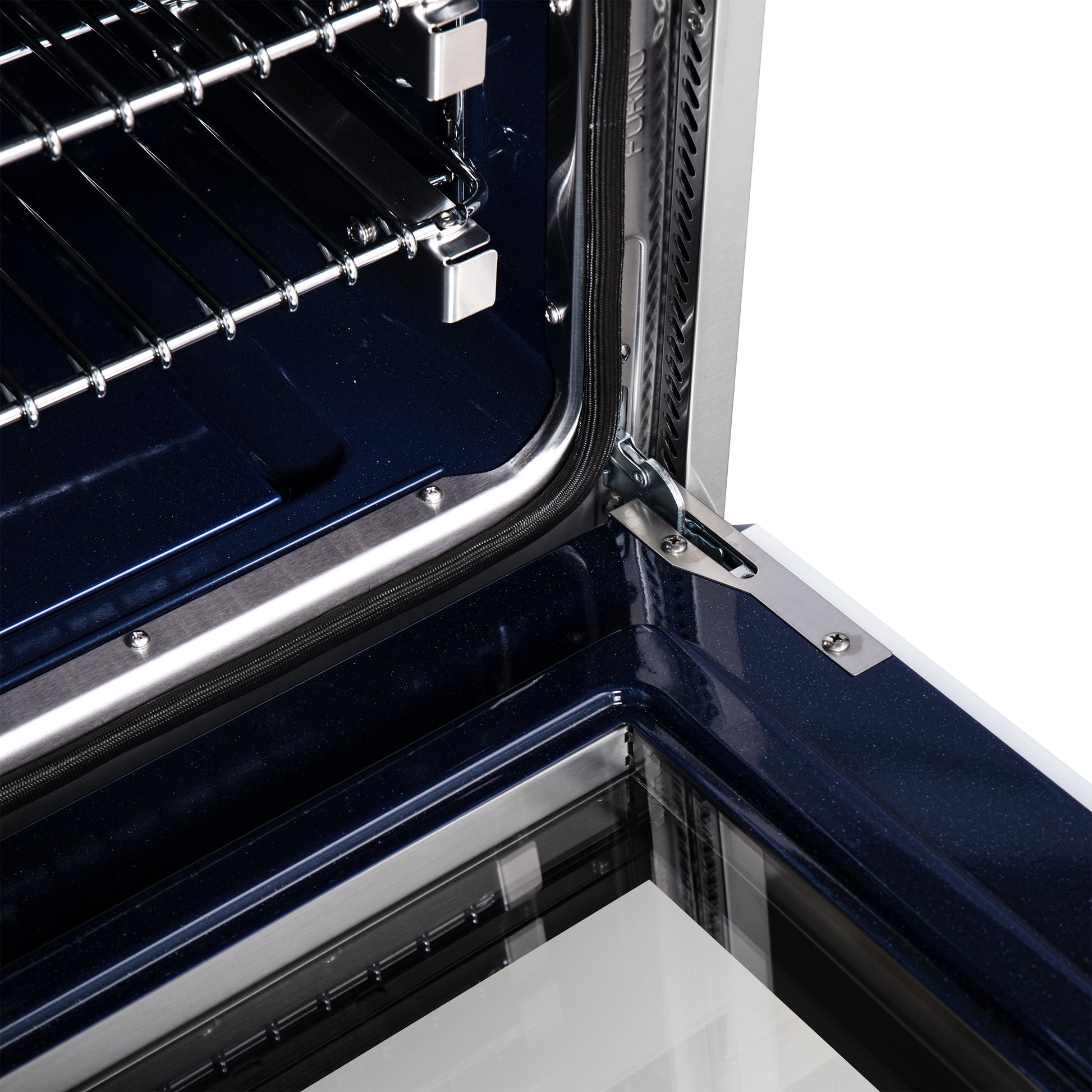 * Speckled blue enamel oven of 4.32 Cu.Ft with convection fan & 30,000 BTU Total Broil and Bake output