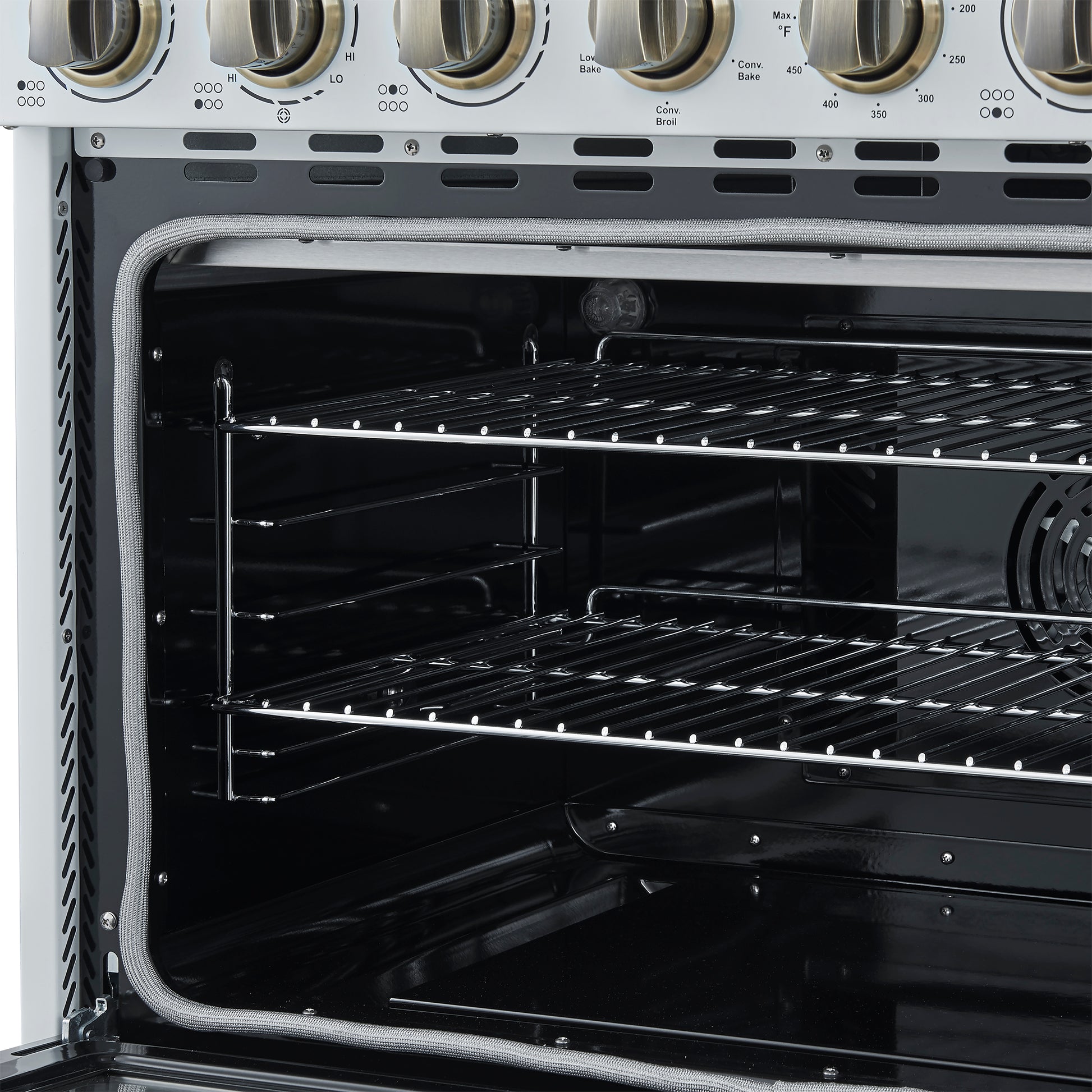 Forno Paolo 36 Inch White Freestanding Electric Range, Stainless Steel, 5.44 cu.ft, True Convection Oven, Energy Efficient