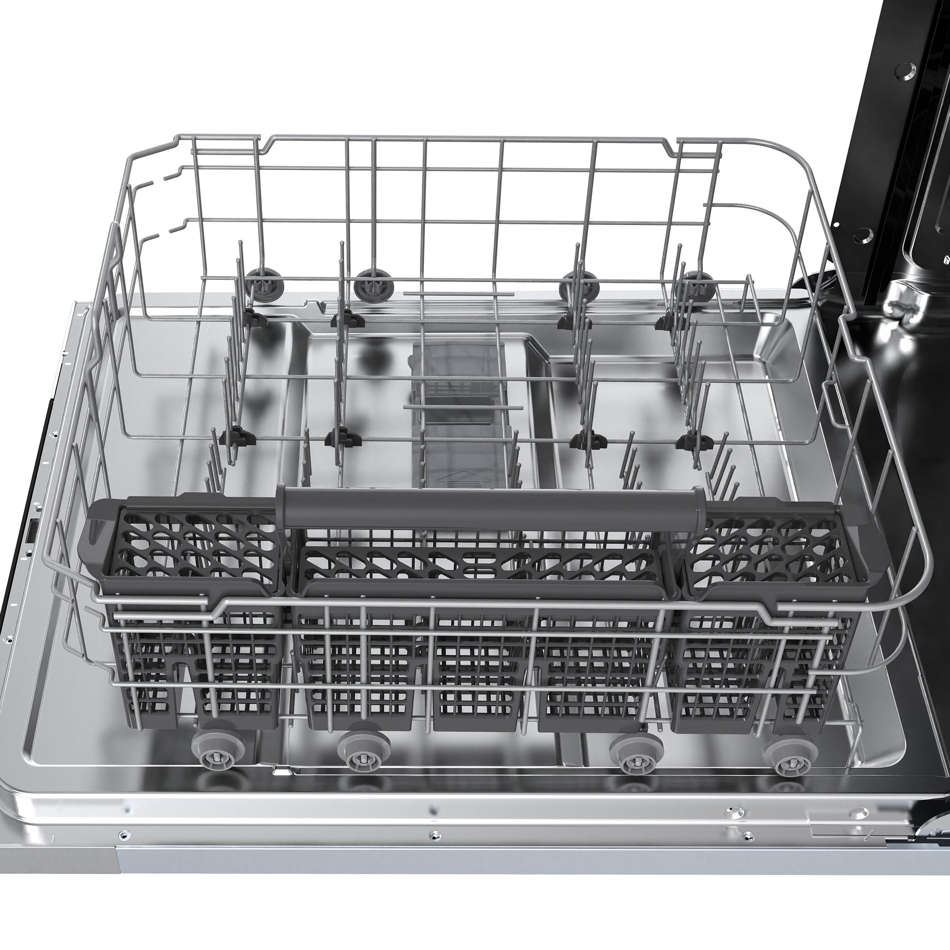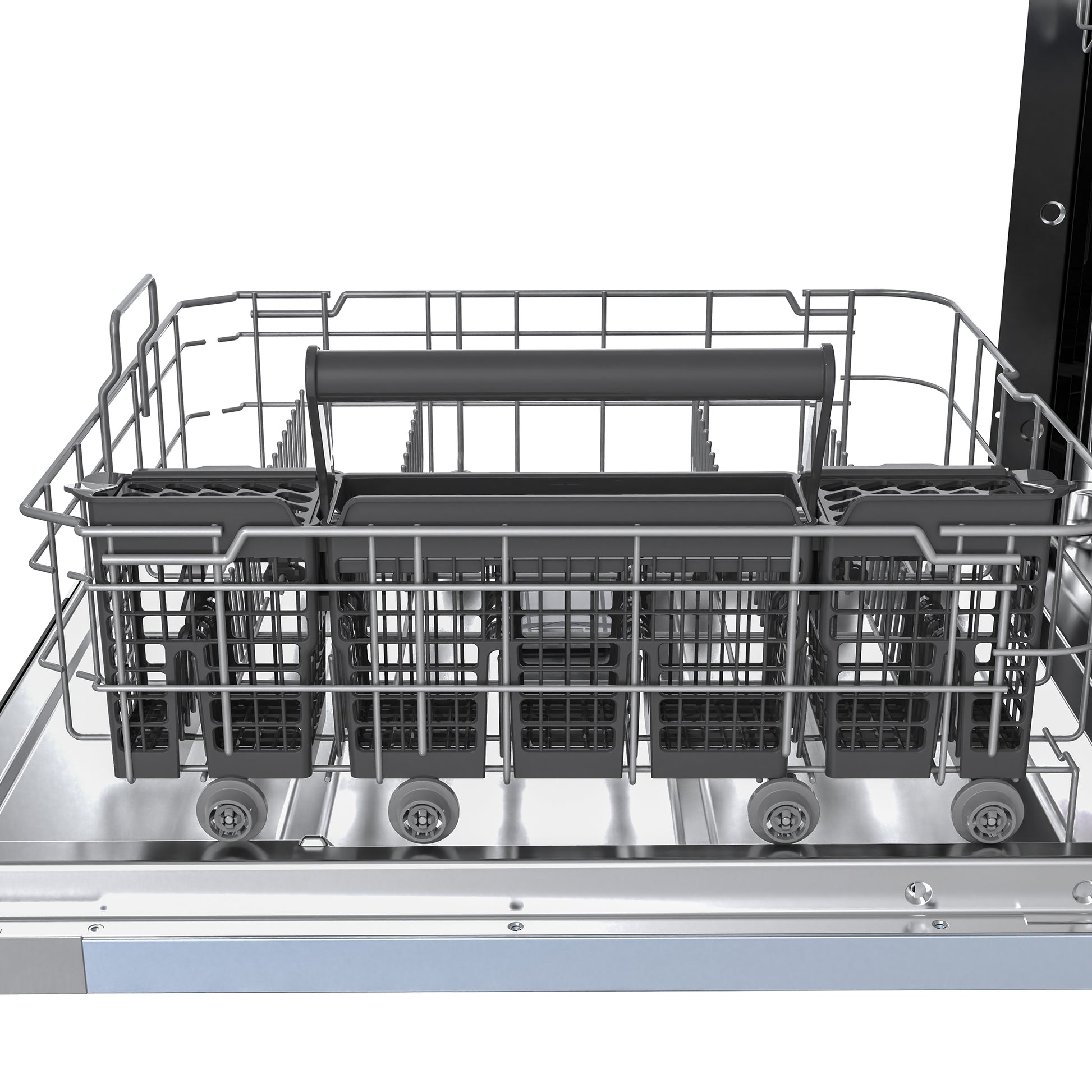 * Removable Silverware Basket: Keeps utensils organized and can be lifted out for easy unloading.