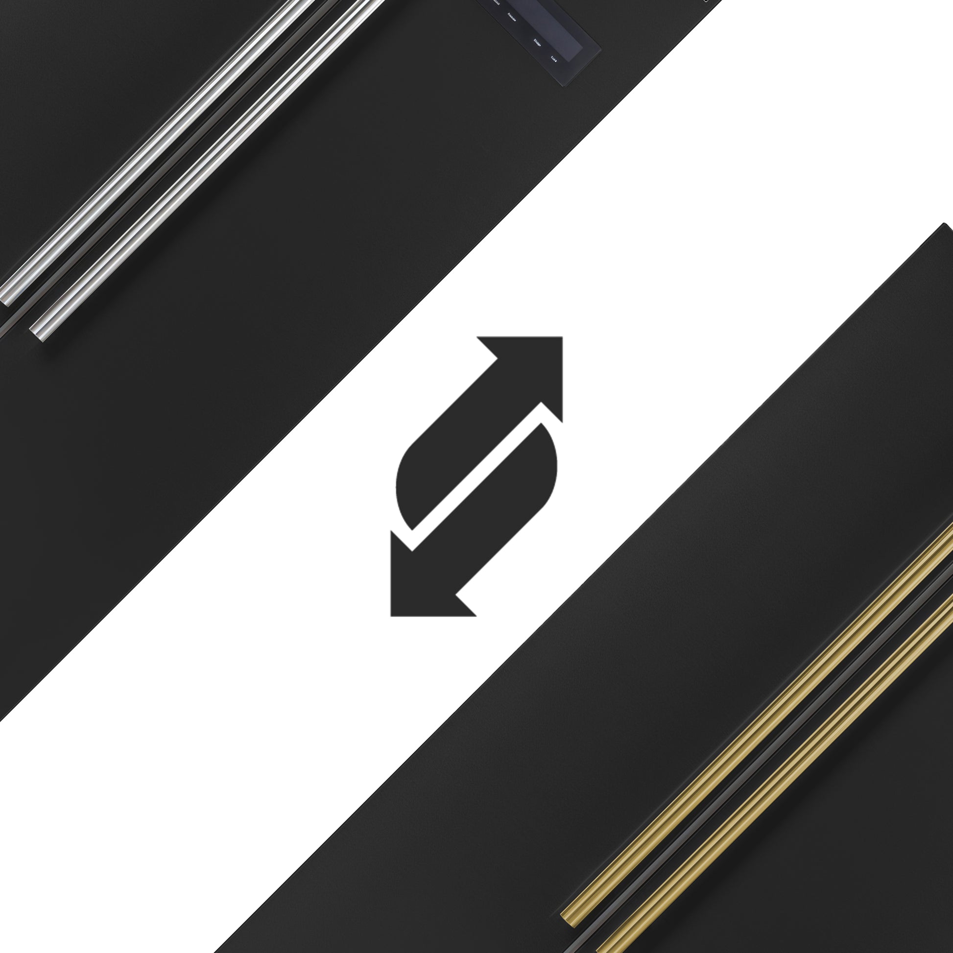 * Sleek black-finished doors with antique brass handles provide a stylish and customizable option.