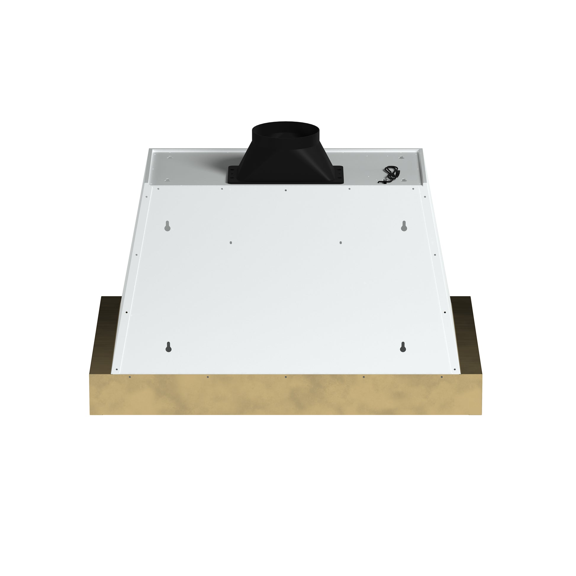 Forno Vittorio 36-Inch Wall Mount Range Hood, White with Antique Brass Trim, 600 CFM Airflow, Dishwasher-Safe Baffle Filters, Remote Control, 3-Speed Fan, Bright LED Lighting.