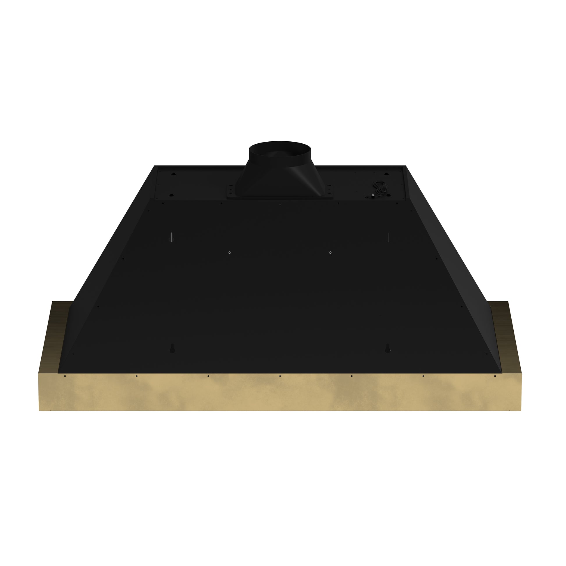 Forno Vittorio 48-Inch Wall Mount Range Hood, Black with Antique Brass Trim, 600 CFM Airflow, Dishwasher-Safe Baffle Filters, Remote Control, 3-Speed Fan, Bright LED Lighting.