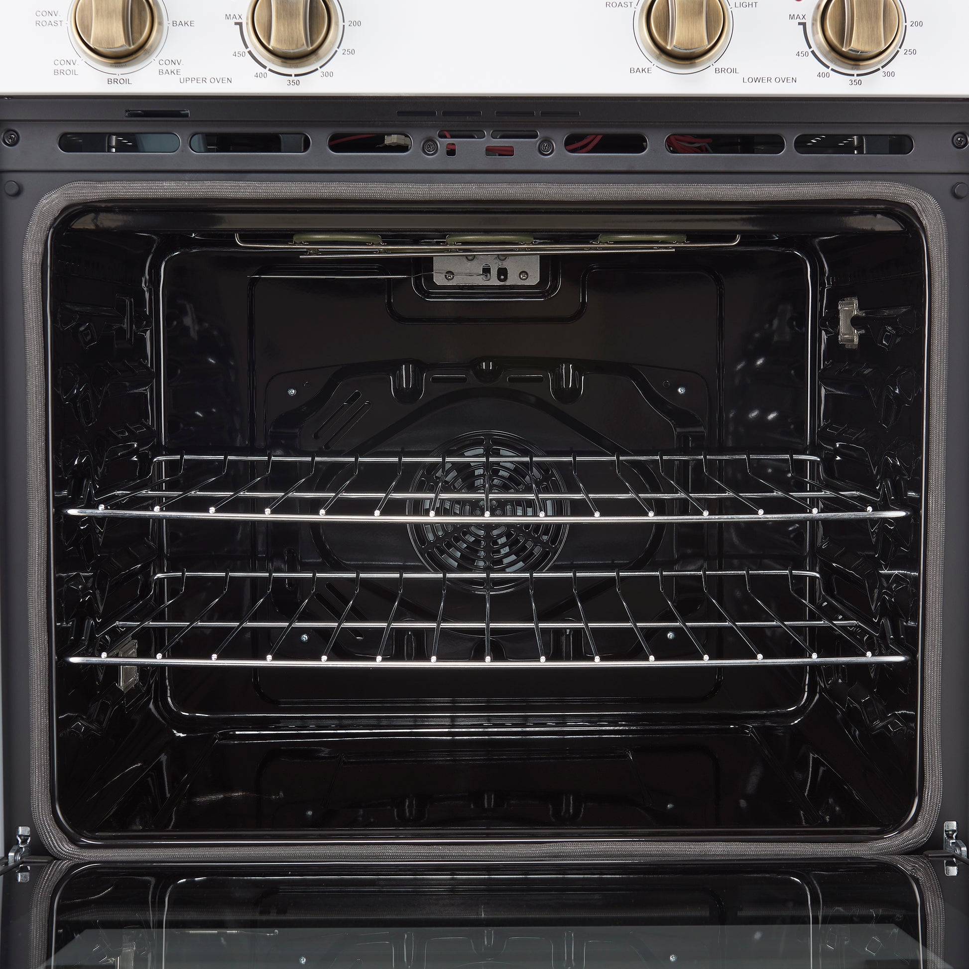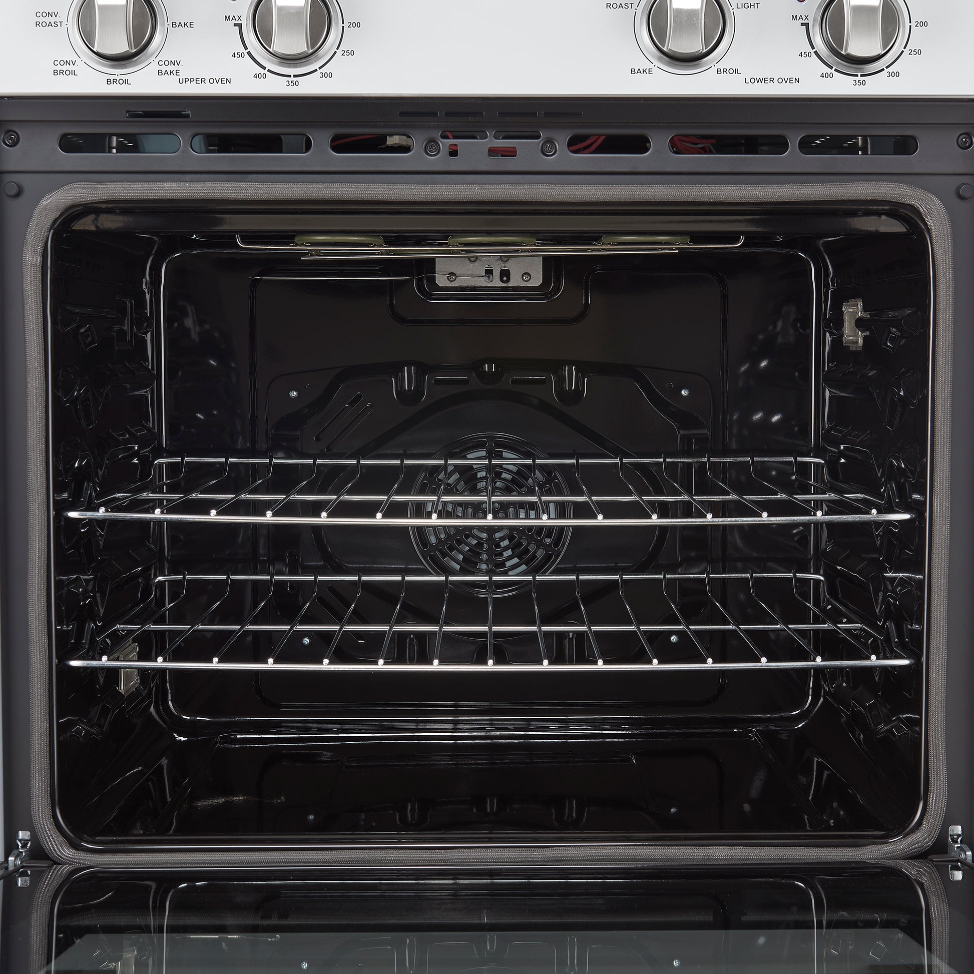 * Upper oven is equipped with a powerful 2000W broiler element, a 1500W bake heating element, and a 50W convection fan, ensuring quick, even heating for perfect cooking results.